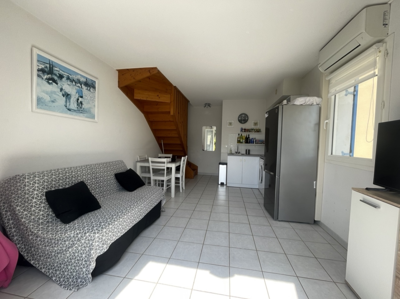 Charmant mazet d'angle de 40m2 habitable situé à 100m de la mer, il se compose d'un salon/séjour avec cuisine ouverte et équipée, un WC séparé au rez-de-chaussé, à l'étage, nous avons une première chambre exposé plein EST, une seconde chambre coin cabine ainsi qu'une mezzanine avec velux, une salle d'eau avec WC.