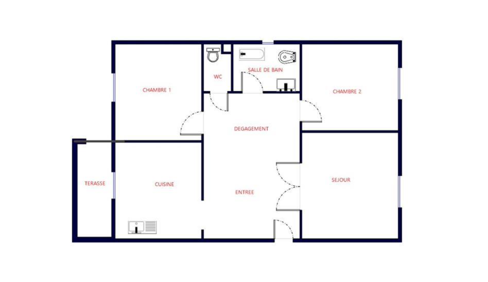 L'entrée de 2,96m² mène à un intérieur qui nécessite des améliorations, comprenant une salle de bain de 3,95m² avec un WC séparé. Les deux chambres, respectivement de 11,16m² et 9,22m², ainsi que la pièce à vivre de 13,5m² et la cuisine séparée de 6,5m², offrent un espace à repenser et à moderniser.